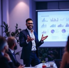 Preparação prática para entrevistas e apresentações em inglês, com foco em confiança e clareza.